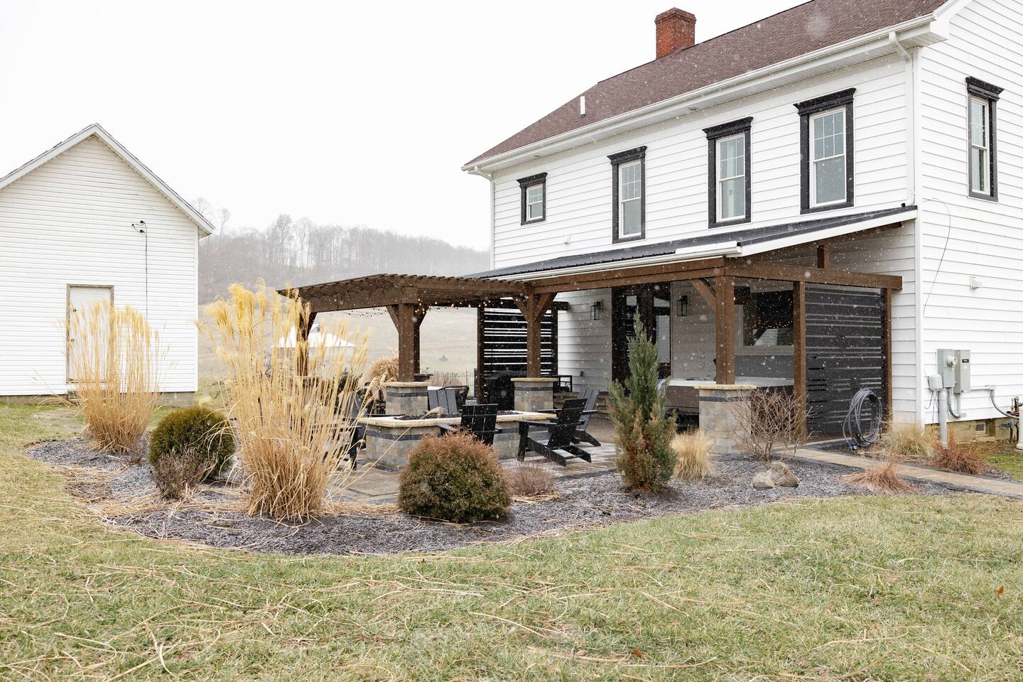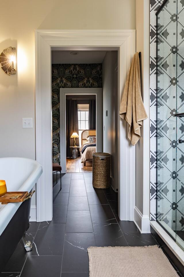 KEY FEATURES: - 3 luxurious bedrooms; 1 king, 1 queen, 2 full - Retreat style patio w/ hot tub, gas firepit & outdoor dining area - 3 full designer bathrooms - Open and well equipped chef’s kitchen - Cozy + open living room w/ 55” smart TV - King en suite bathroom w/ heated floors & soaker tub - Indoor & outdoor dining w/ seating for 8 - Parlor sitting room w/ books, record player and natural light - Serene rural farm setting minutes from Seneca Lake & Wolf Run - Dog friendly - up to 2 dogs (50lb max) can be added to reservation - In-unit washer & dryer - High speed WIFI Here Are A Few Kind Words From Our Past Guests⬇️ “This place is the true meaning of a hidden gem. The property honestly deserves to be featured in a magazine somewhere. Usually, the pictures on Airbnb look nicer than the actual place—but this was the complete opposite. The house looked even better in person than the beautiful photos posted." - Dallion “We all thought the place was immaculate, gorgeous, charming, and whatever adjective you use to describe a location that takes your breath away! The pictures on the listing are great, but seeing this home in person is a real experience. Everything in the house is not only gorgeous but extremely thoughtful. You can tell that many hours were spent curating this experience to make anyone who visited feel welcomed, comfortable, and inspired. Coffee, music, make-up towels, board games, beautiful showers, a clawfoot tub, heated floors in the main bathroom, and a hot tub?! This home truly has it all.” - Camiron “This is one of the best air bnb stays we have experienced. Very beautiful, clean, and welcoming. The interior design is unbelievable!!! Loved it and will definitely return.” - Lex ⭐⭐BEDROOMS & BATHROOMS⭐⭐ Retreat to the second floor where three beautifully designed bedrooms await, offering restful nights for up to eight guests. Indulge in hotel-quality bedding, luxurious linens, and room-darkening curtains in each room. The king bedroom boasts a smart TV, workstation, and full-length mirror, along with a private ensuite bathroom featuring double vanities, heated tile floors, a large walk-in shower, and a luxurious clawfoot soaker tub. Across the hall, a queen bedroom and a charming room with two full beds share a convenient jack-and-jill style bathroom with a bathtub and shower. For added convenience, a third full bathroom with a walk-in shower is located on the main floor. All bathrooms are stocked with luxury Apotheke toiletries, ensuring a pampered experience for every guest. ⭐⭐KITCHEN & DINING⭐⭐ The heart of this home is undoubtedly the open and inviting kitchen, fully equipped to inspire culinary creativity. Whether you're whipping up a gourmet meal or a simple snack, you'll find everything you need, from cookware and bakeware to utensils, oils, spices, and even a blender. A 36" gas range and wall oven make cooking a breeze, while the large island provides ample space for food preparation and casual seating. Enjoy picturesque views of the farm and rolling hills through the large picture window framing the cast iron sink. And for the perfect start to your day, the kitchen boasts a fully stocked coffee bar featuring a 12-cup drip coffee maker, a Nespresso machine, flavored syrups, creamers, sweeteners, and a variety of coffee and tea options. Adjacent to the kitchen, the dining area boasts a table with seating for up to eight, perfect for shared meals and game nights. A built-in bar area with a beverage fridge provides extra chilled storage and convenient access to barware for crafting cocktails. ⭐⭐LOUNGE SPACES⭐⭐ The Garfield Inn offers two distinct living spaces, each with its own unique charm. The main living room, adjacent to the kitchen and dining area, showcases the home's original character with exposed timber frame beams, transom windows, and an exposed brick chimney. This inviting space is designed for comfort and gathering, featuring a 60" smart TV, plush throw blankets, various seating options, and a selection of board games. Across the foyer, step back in time to the parlor, a tranquil retreat reminiscent of a bygone era. Here, you can enjoy classic tunes on the record player, curl up with a good book, or simply savor a cup of coffee while gazing out the large picture window. Whether you seek entertainment or quiet relaxation, this home provides the perfect space for every mood. ⭐⭐OUTSIDE SPACE⭐⭐ Step outside and discover your own private resort-style oasis! The expansive patio, conveniently located just off the kitchen and dining area, offers the perfect setting for relaxation and entertainment. Enjoy the hot tub year-round, rain or shine, under the covered and lighted section of the patio. Dine al fresco beneath charming bistro lights, or gather around the gas fire pit for cozy evenings with minimal effort. A Blackstone griddle provides the opportunity for outdoor cooking, adding to the convenience and enjoyment of this space. And coming soon in Spring/Summer 2025, the front porch will be the ideal spot to savor your morning coffee in a classic rocking chair, while the yard transforms into a playground for horseshoe, volleyball, and cornhole games.